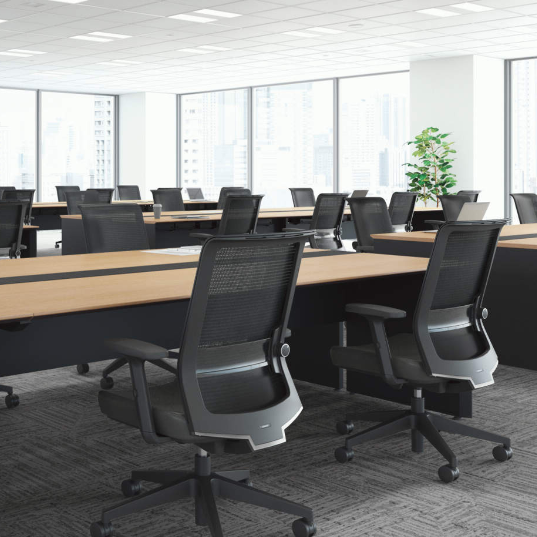 シンプルなブラックフレームと軽快なメッシュデザインは、オフィスにも自宅書斎にも自然に調和。