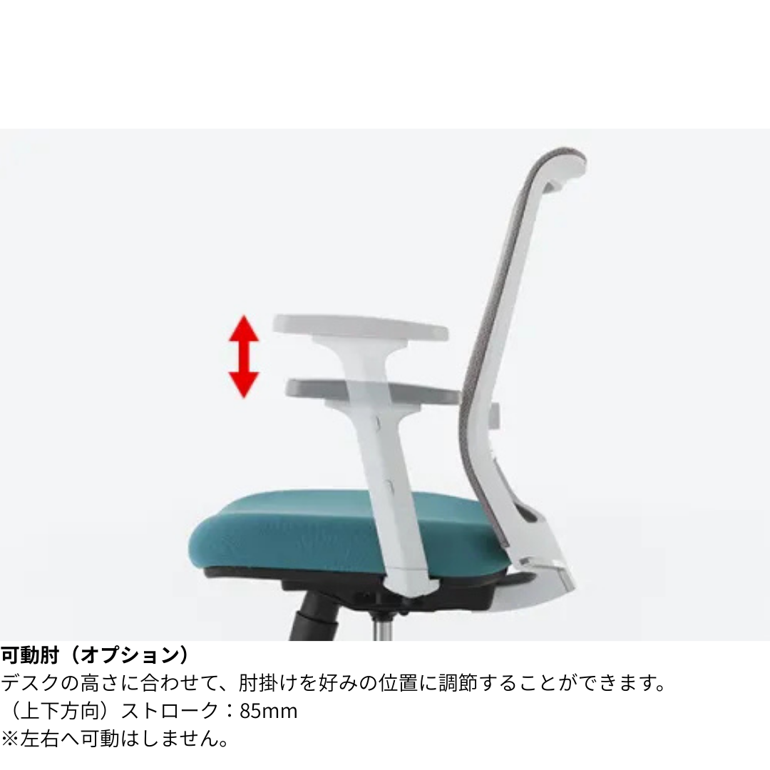 肘の高さを体格やデスクに合わせて調整することで、肩や首への負担を軽減し、長時間作業でも集中力を保ちやすくなります。