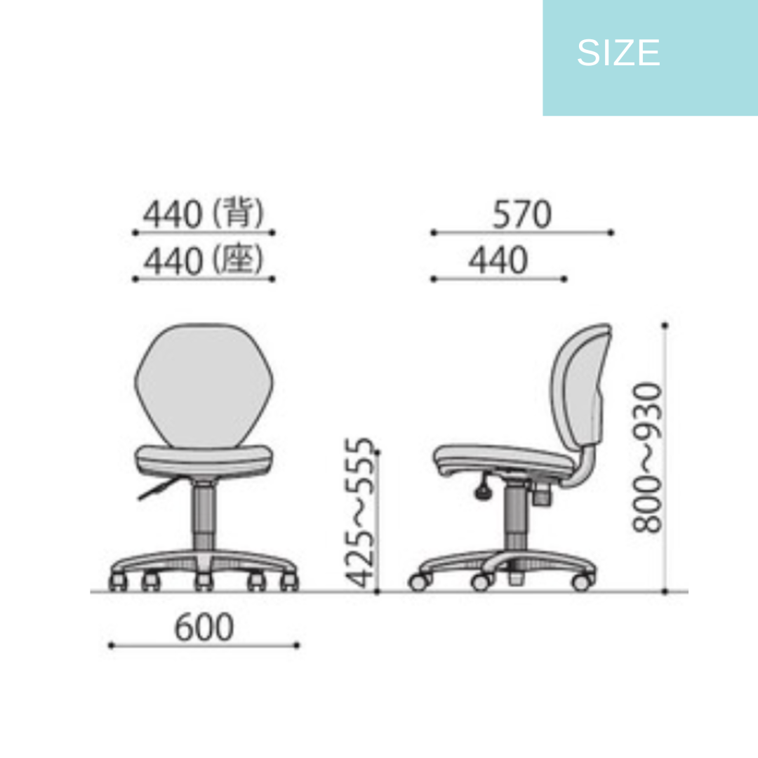 ガス圧式昇降機能(SH425~555mm)でデスクや身長に合わせた高さ調整も簡単。