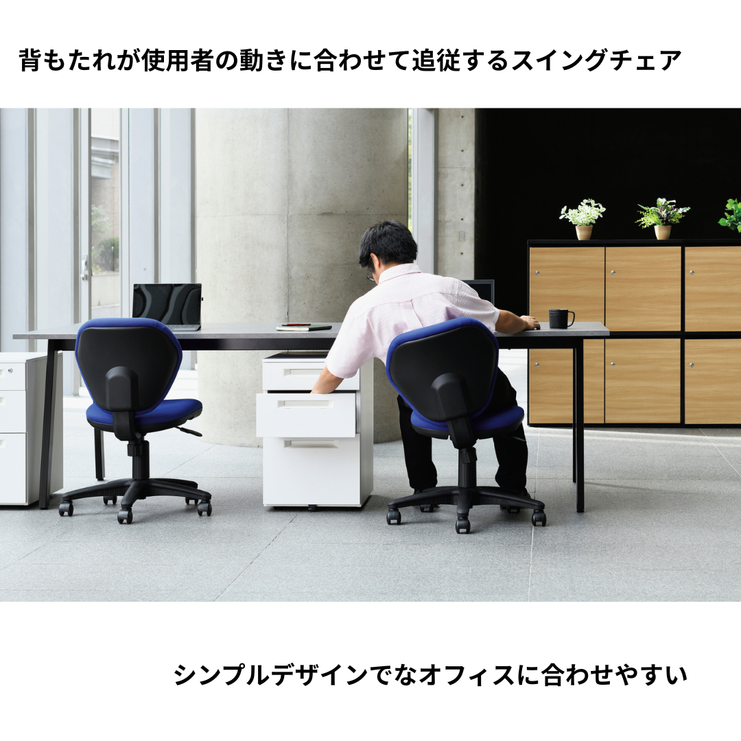 背もたれが体の動きに合わせてしなやかに揺れる「背スイング機能」を搭載した、コンパクト設計のオフィスチェアK-921。
