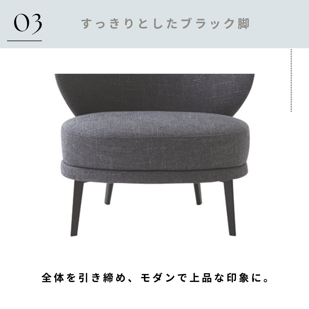 落ち着いたファブリックカラーとミニマルなフォルムで、北欧・モダン・ホテルライクなど幅広いインテリアにマッチします。