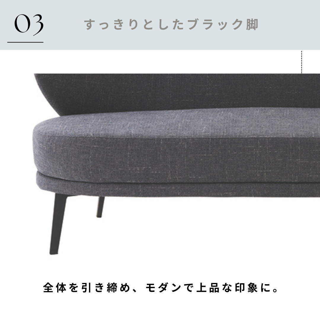 落ち着いたファブリックカラーとミニマルなフォルムで、北欧・モダン・ホテルライクなど幅広いインテリアにマッチします。