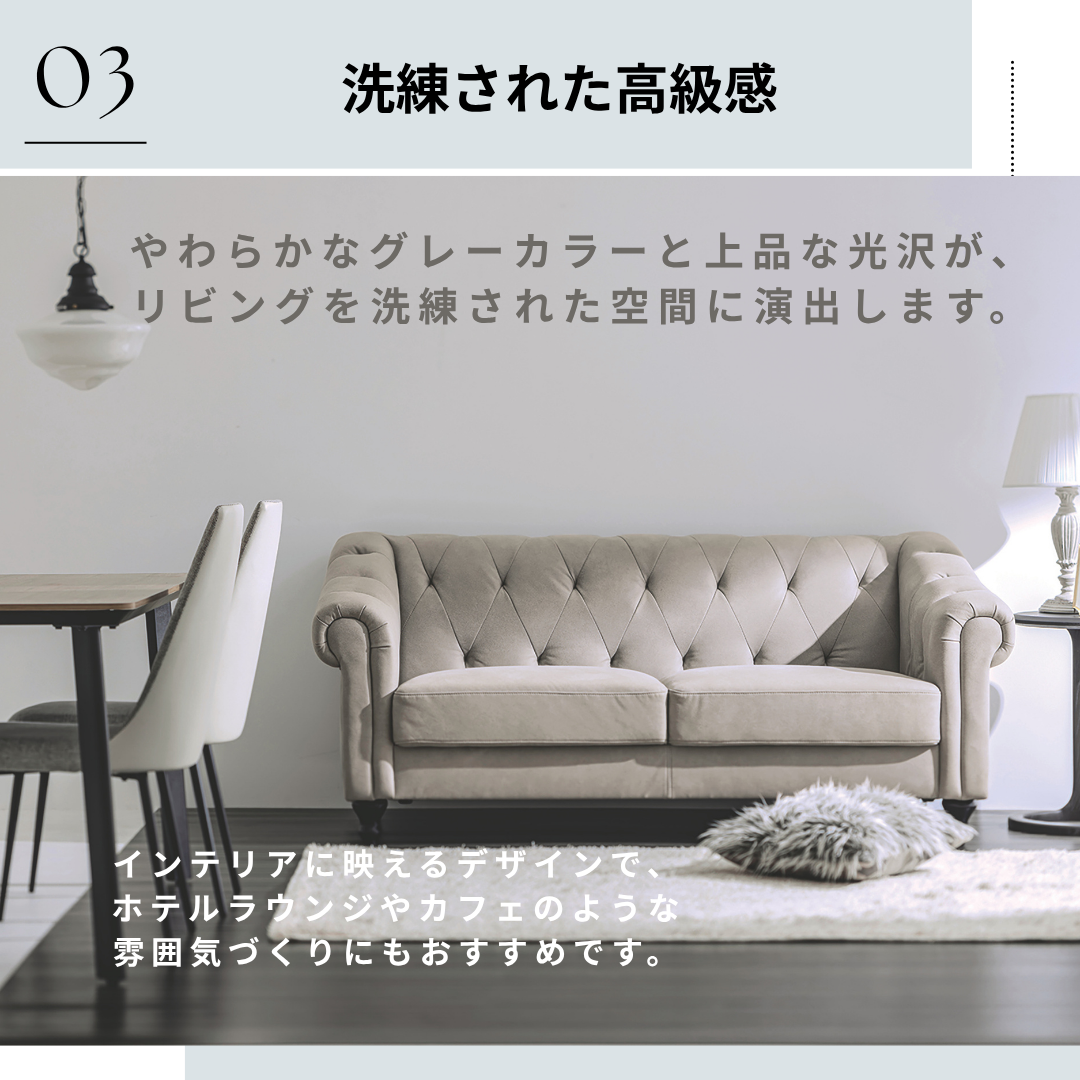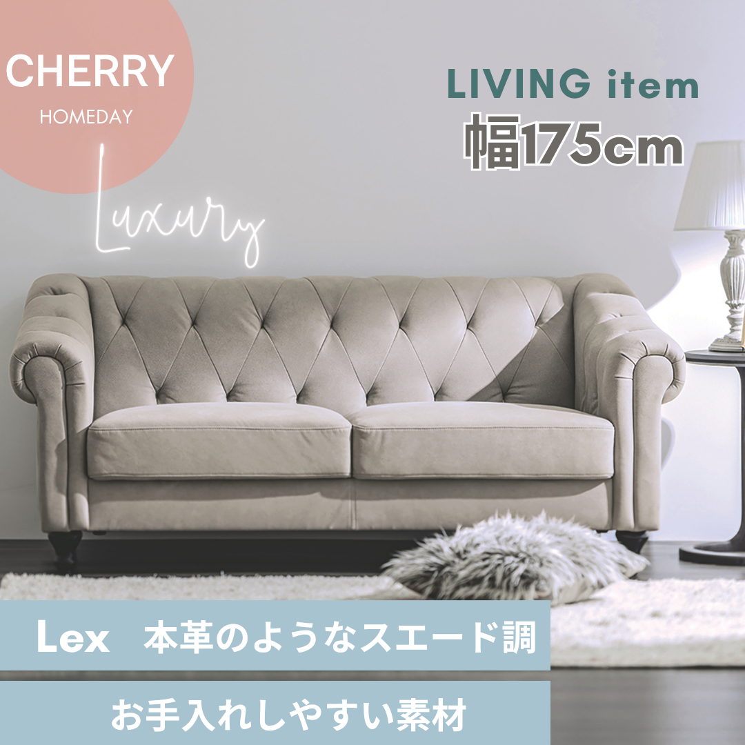 CHERRY Homeday ソファ LS-416-Lex 2.5人掛け 幅175cm チェスターフィールド風 レザー調 スエード モダン