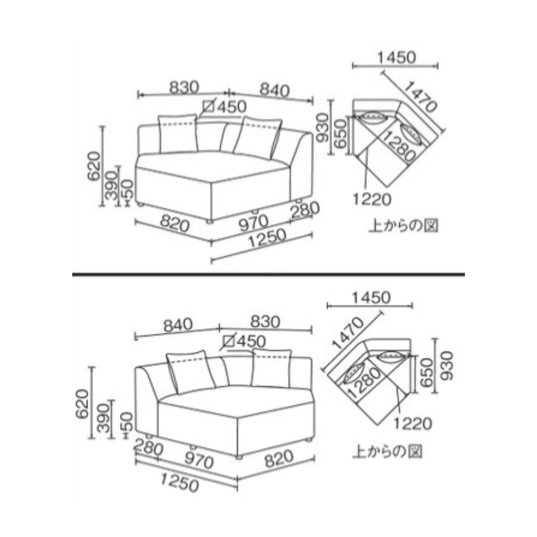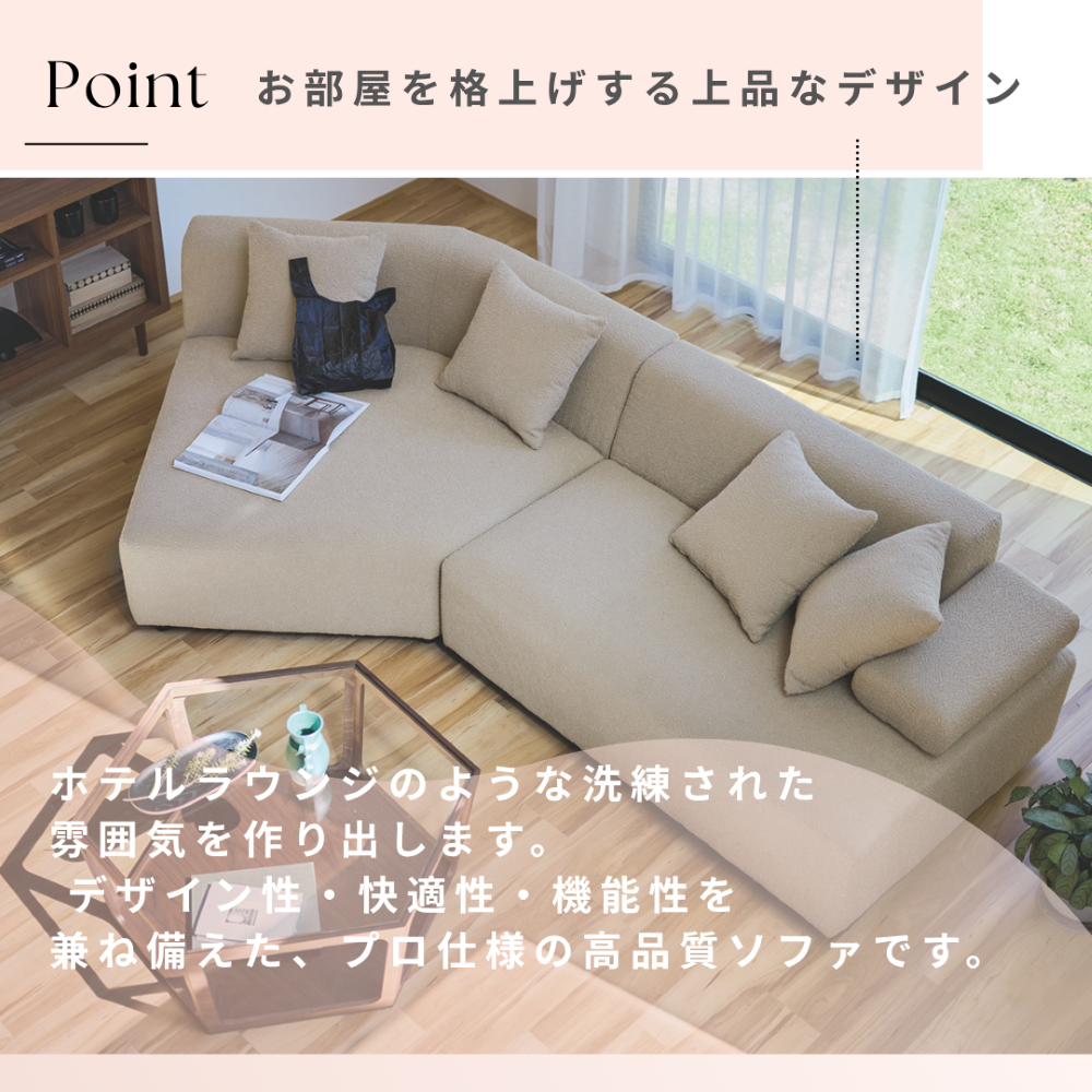 カウチ部分を組み合わせることで、L字型やストレート型などお部屋に合わせたレイアウトが可能。
