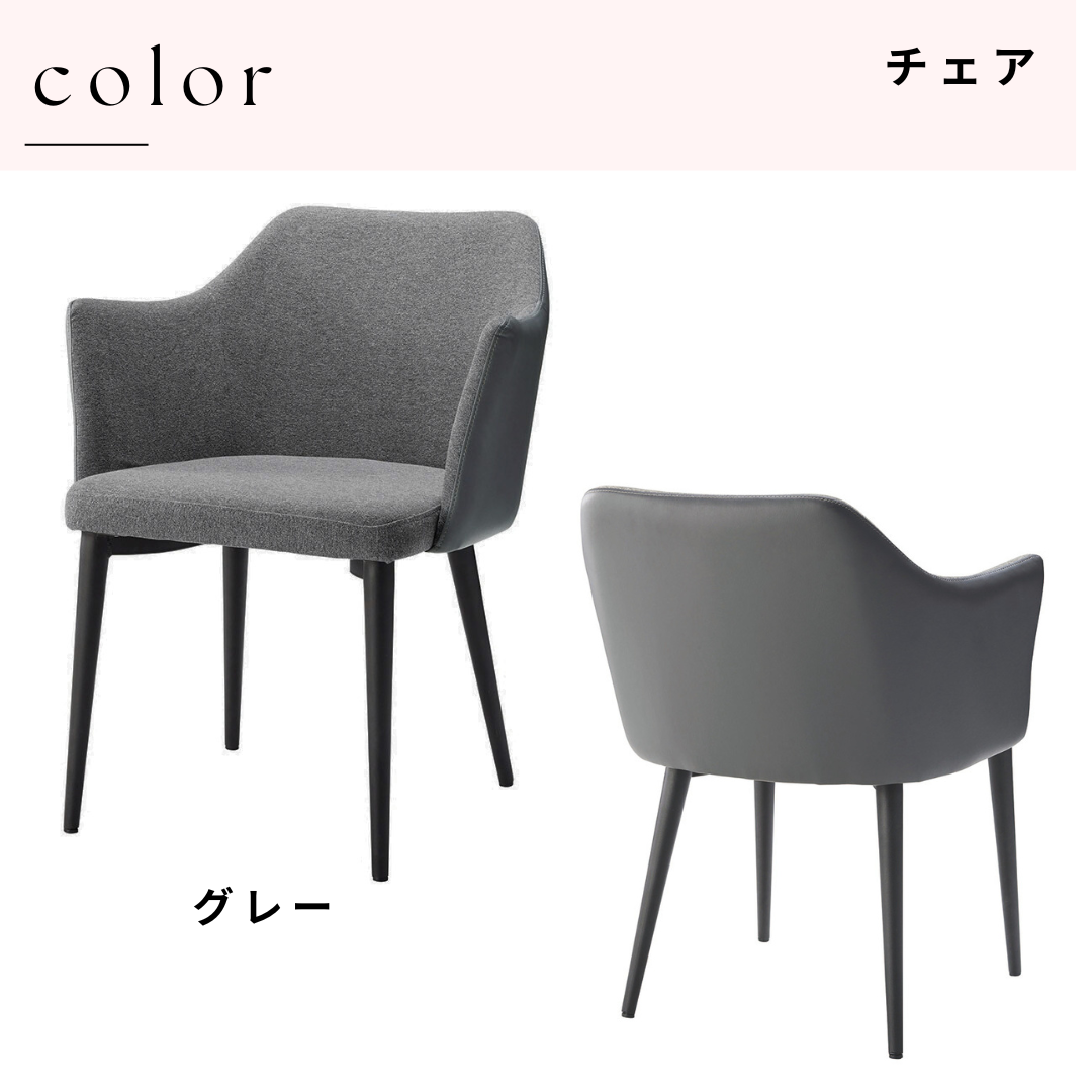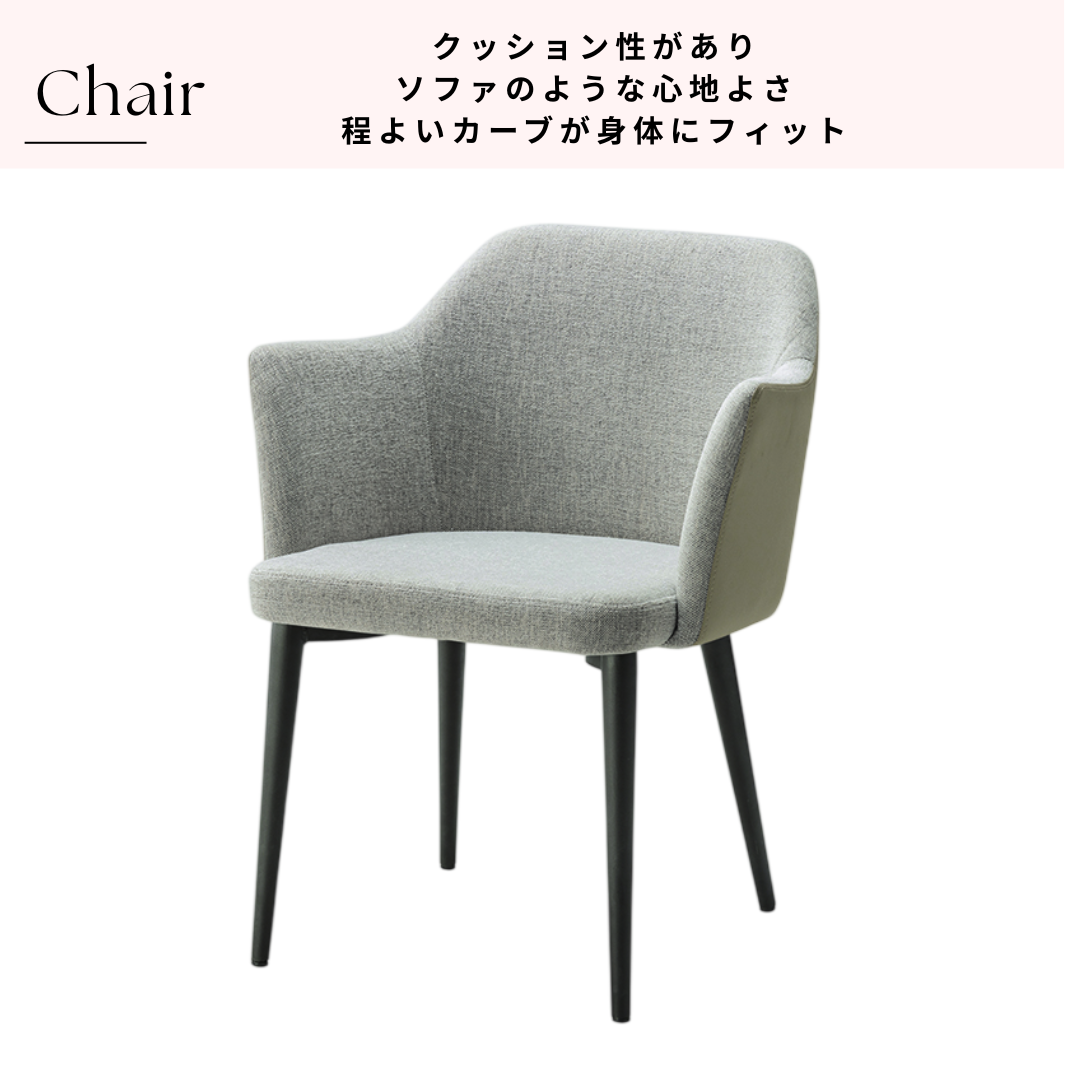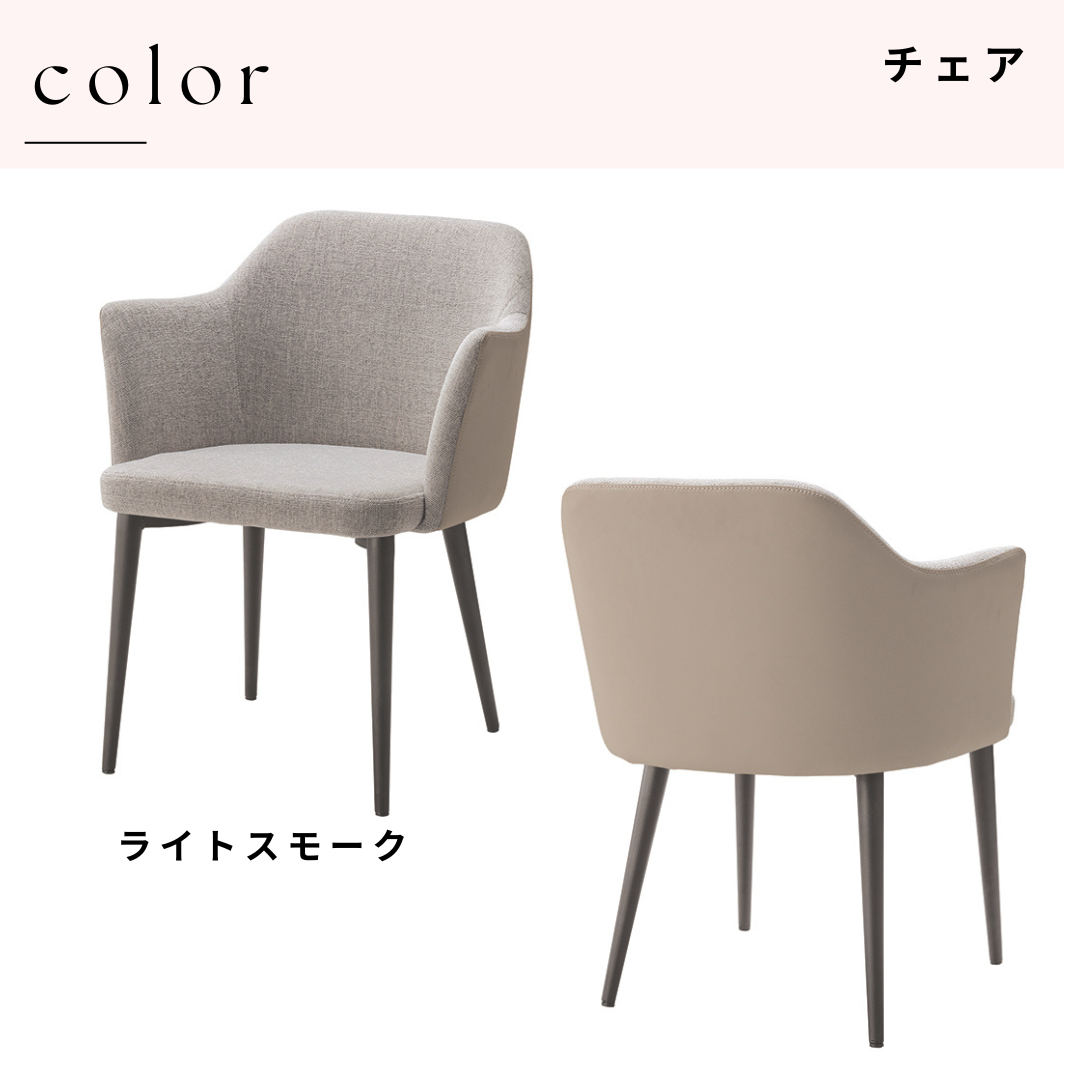 落ち着いたライトスモークカラーの張地とスリムな脚部が、モダンで洗練された印象を演出。