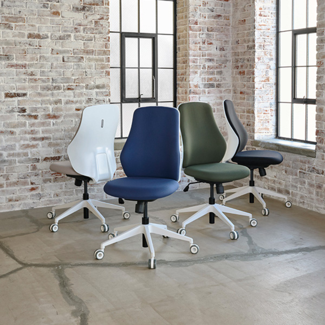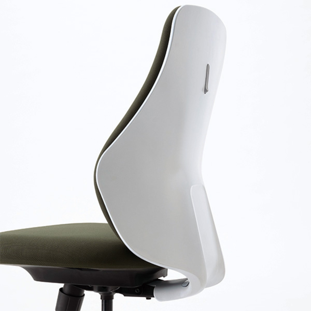 やわらかなフォルムと機能性を兼ね備えた、ハイバックタイプのオフィスチェア。