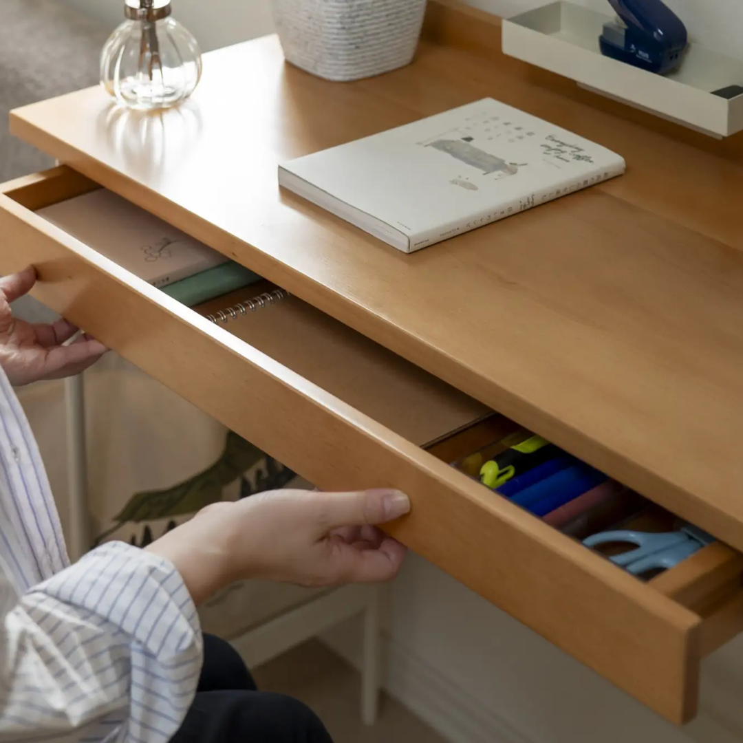 さらに天板下には幅広の引き出しを備え、収納力も確保。