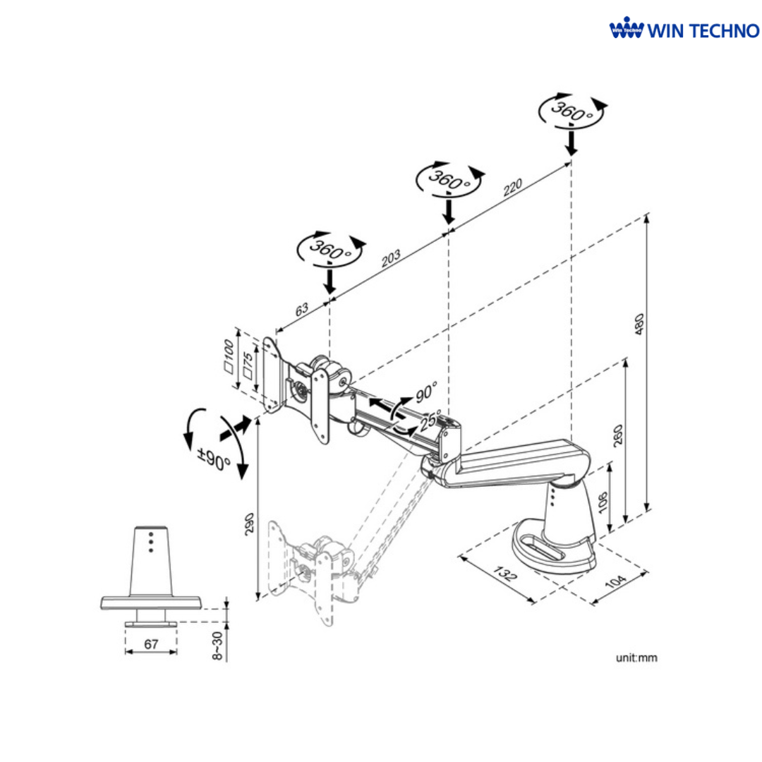 デスク上のスペースを有効活用し、快適な作業環境を実現する1画面用モニターアーム。