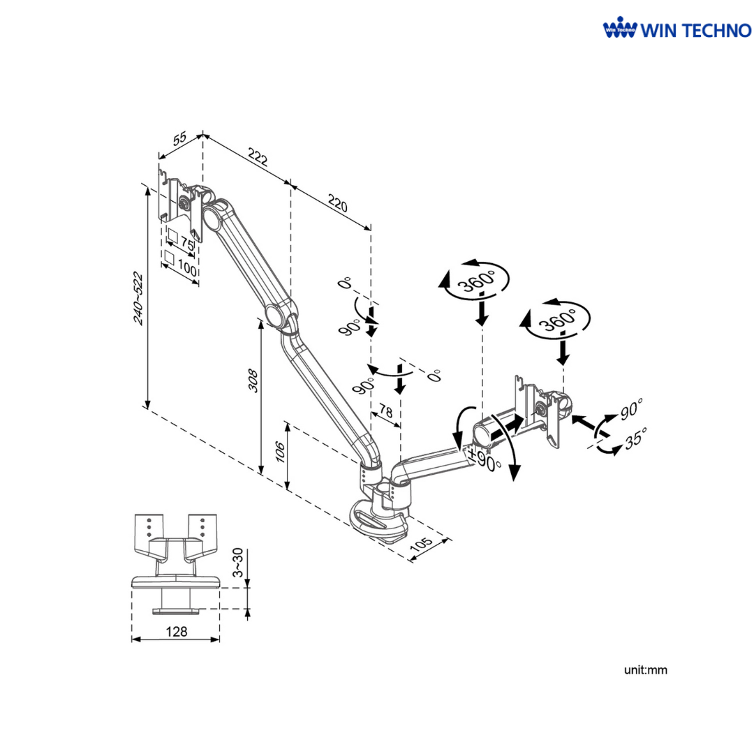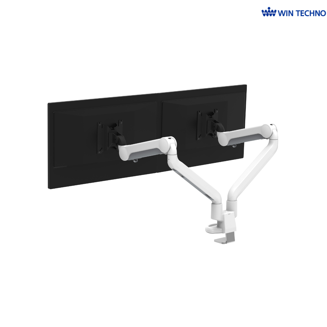 水平・垂直に動く多関節構造により、2台のモニターを自由な位置に配置でき、用途に応じた最適な作業環境を実現します。