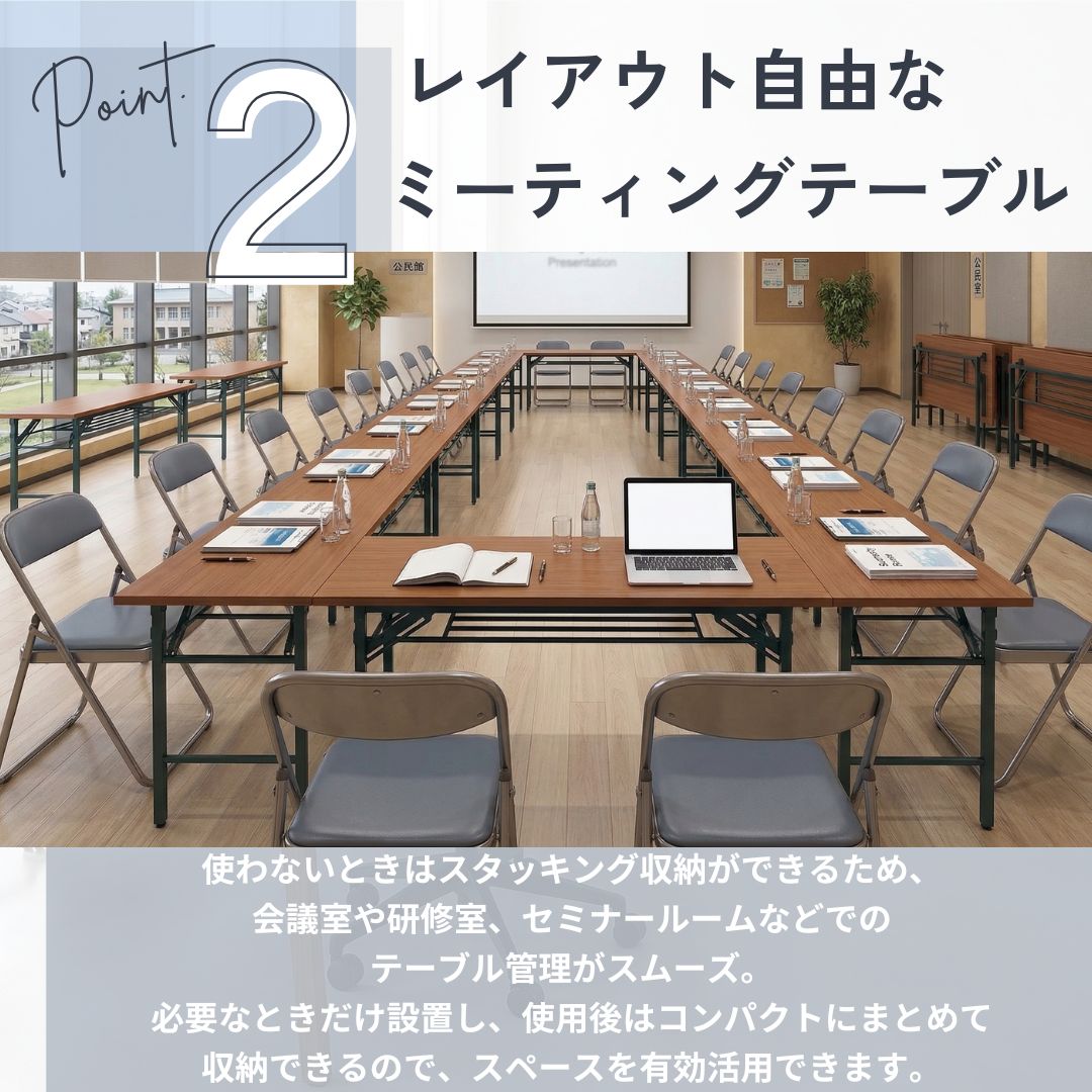 オフィスの会議やセミナー、学校や公共施設での利用、展示会やイベントでの臨時のテーブルとして幅広く使用されています。