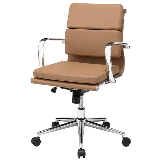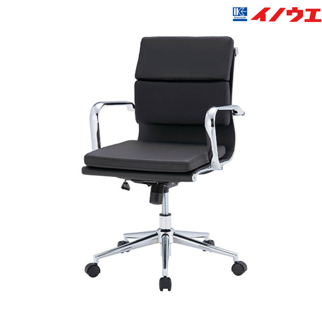 空間に上質な印象を与える、レザー調ローバックオフィスチェア。